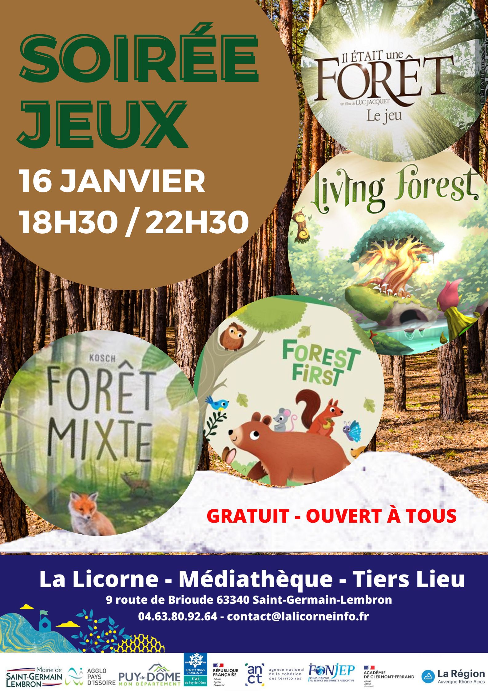Soirée jeux – gratuit – ouvert à tous le 16 janvier 2026 de 18h30 à 22h30 à la LICORNE